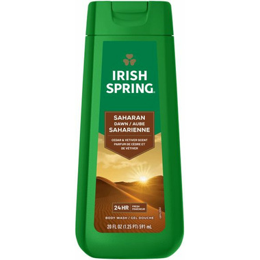 Wake up your shower with this exclusive Irish Spring Saharan Dawn Body Wash, crafted for thrill-seekers who crave adventure. Infused with a refreshing Cedar and Vetiver scent, transport your senses to the sun-drenched deserts of Saharan dawn and inspire your daily quests. Delivering 24 hours of long-lasting crisp freshness. Designed to double as both a face wash and body wash, Irish Spring Saharan Dawn simplifies your routine, offering a refreshing cleanse from head to toe. Its formula is paraben free and crafted without phthalates. Plus, it helps retain your skins natural moisture, ensuring you feel hydrated and clean after every use. Whether you're exploring the world or navigating your day-to-day, Irish Spring makes sure you're ready for any journey. Let the bold, curated Cedar and Vetiver fragrance inspire your wanderlust, wherever life takes you.