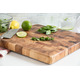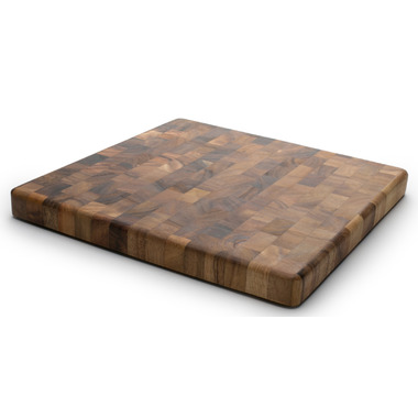 Made of gorgeous Acacia hardwood, this 14 inch square x 1. 25 inch thick End Grain Chopping Block is functional and beautiful due to its rich, shimmering colors. Unlike traditionally made wood cutting boards, end grain construction is less dulling to cutlery because the wood grain direction accommodates cutting instead of resisting it. Wear and tear is minimized on both cutlery and on the board, giving more longevity to all your cutting tools.