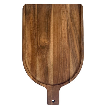 Fashion meets function. This wide charcuterie shovel is conveniently sized and features a handle, making it easy to carry or hang up on display. Made of gorgeous Acacia hardwood, this board is functional and beautiful due to its rich, shimmering colors and is great for your cheeses, sandwiches, flatbreads, cured meats, nuts and dried fruits. The serving paddle measures 14” x 9” x 0.7” and weighs 1.1 pounds.