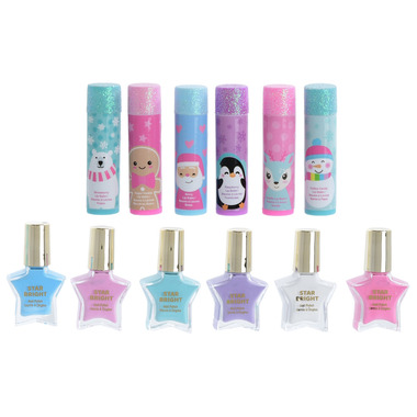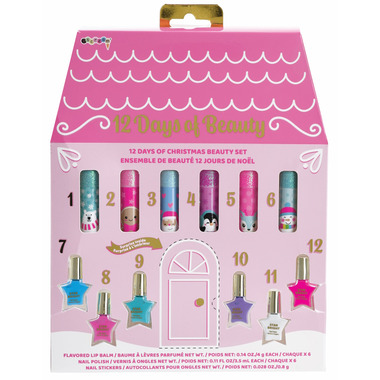 What better way to celebrate than with this 12 days of beauty lip & nail Set! Comes complete with an assortment of 6 lip balms and 6 nail polishes.