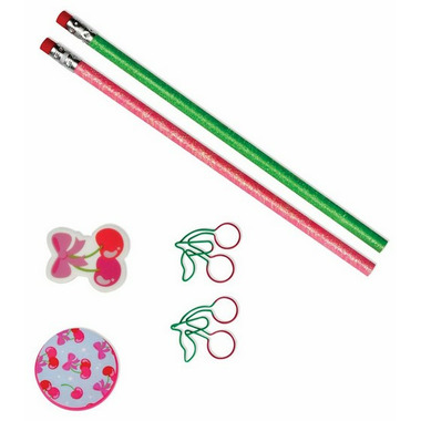Includes: 1 notebook, 2 pens, 2 pencils, 1 eraser, 1 sharpener, 2 paper clips