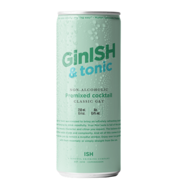 ISH Spiritis - a mindful drinking company based out of Copenhagen that makes non-alcoholic premixed cocktails. Enjoy this classic G&T in a handy 4 pack.
