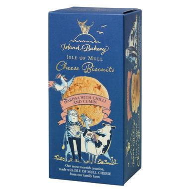These appetisingly spiced, all butter biscuits have a melt-in-the-mouth texture, with the Isle of Mull Cheese flavour gently warmed with harissa. Warm without being hot.