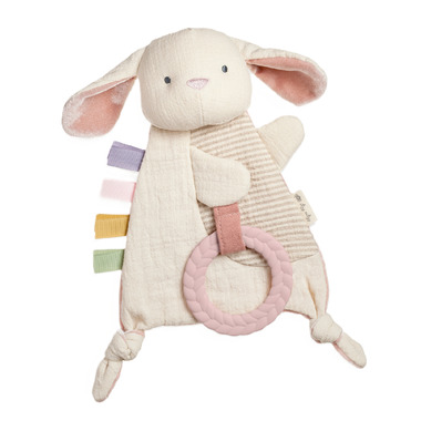 Meet Bitzy Crinkle, a loveable sensory toy that crinkles and excites. With features like soft natural cotton fabric, textured ribbons and a braided teether, baby will love to explore this new friend. Watch as your little one is captivated by crinkles and giggles!