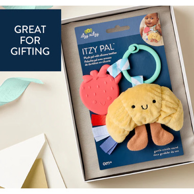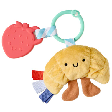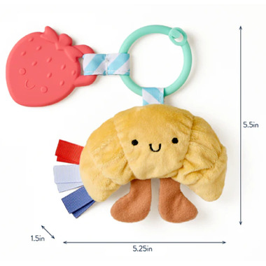 Chloe the Croissant! The Itzy Pal joins your little one as the most playful (& cutest!) pal on the block! Let baby discover the soft plush character, gentle silicone teether to soothe sore gums, engaging crinkle sounds and colorful textured ribbons.