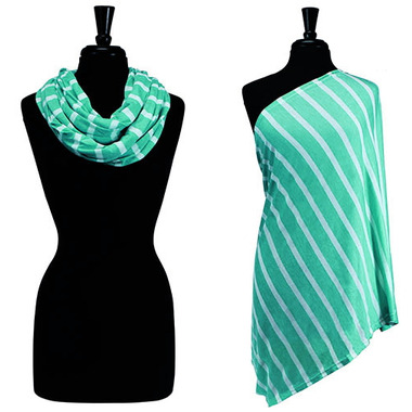 The Itzy Ritzy Nursing Happens Infinity Breastfeeding Scarf offers you a fashionable, everyday style that is convenient to wear and use while nursing your baby. Nothing to take on or off, just unwrap the Nursing Happens Infinity Breastfeeding Scarf from around your neck and adjust the fabric to cover all sides of you and your baby. This infinity scarf offers you full coverage in front as well in the back without snaps or buckles, while providing airflow and ability to maintain eye contact with your baby. Made of 50% cotton and 50% polyester jersey knit with finished edges, the Nursing Happens scarf is a single sided striped print with a white back.