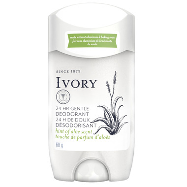 Ivory Gentle Deodorant, with a hint of aloe fragrance, is made with naturally derived Dead Sea salt for 24-hour odor protection that is designed to be gentler on your skin.