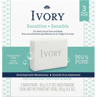 Experience the gentle touch of Ivory Sensitive bar soap, your ultimate companion for a refreshing cleanse the whole family can enjoy (ages three and up)! This Fragrance Free bar soap is specially formulated without heavy perfumes, parabens, or phthalates, making Ivory an ideal solution for those seeking a simple, natural bar soap that offers a caring and effective wash.