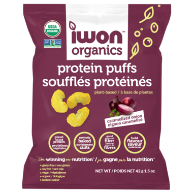 Iwon Organic Protein Blend (Green Peas, Brown Rice Flour, Pea Protein), Sunflower Oil And/or Safflower Oil, And Caramelized Onion Seasoning (Tapioca Maltodextrin, Cane Sugar, Sea Salt, Onion Powder, Yeast Extract, Lactic Acid, Cayenne Chili Pepper, Citric Acid, And Not More Than 2% Sunflower Oil Added As A Processing Aid).