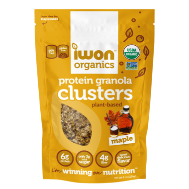 Ingredients: IWON Organic Protein Blend (Oats*, Brown Rice Syrup*, Pea Protein Crisps*, Rice Protein Isolate* Fava Bean Isolate*), Inulin Syrup*, Coconut Oil*, Coconut Sugar*, Almonds*, Maple Syrup*, Natural Flavor, Chia Seeds*, Salt. *Organic
