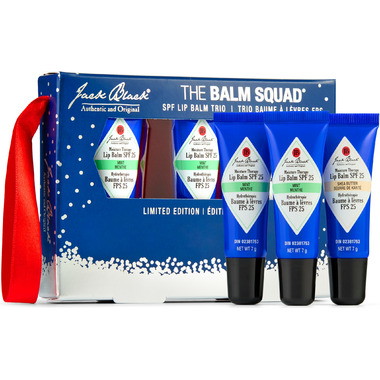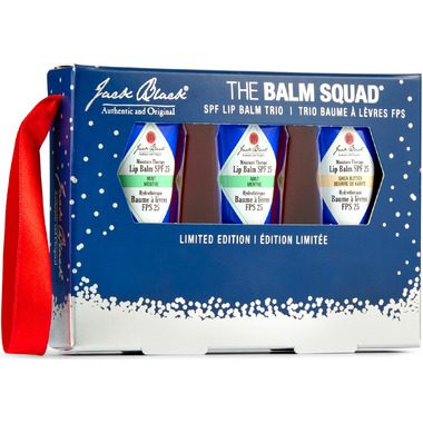 Stock up on Jack Black's best-selling lip balms with this trio featuring customer favourite flavours two Natural Mint & Shea Butter and one Shea Butter & Vitamin E.