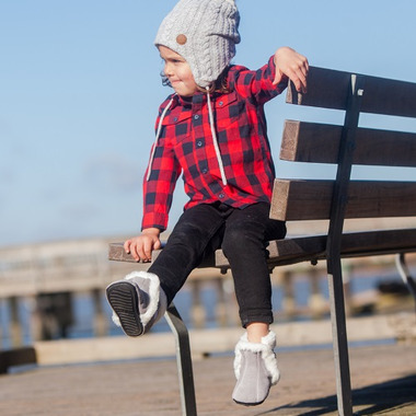 Your little one’s tootsies will thank you for these ultra-soft, toasty-warm, grey genuine suede boots!