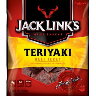 Jack Links Meat Snacks- Teriyaki Beef Jerky is slow cooked with an authentic teriyaki marinade.