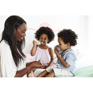 Jack N’ Jill Silicone Toothbrush products are unique because they are one solid piece of medical grade silicone–right down to the bristles. The brush is designed to be used as a ‘toothbrush’ not a ‘teether’ and chewing should be avoided.