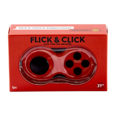 The Flick & Click is a compact, multi function fidget toy designed to keep hands actively engaged. Shaped like a mini game controller, it features clickable buttons, rotating dials, and tactile switches that offer a satisfying sensory experience for stress relief and focus.