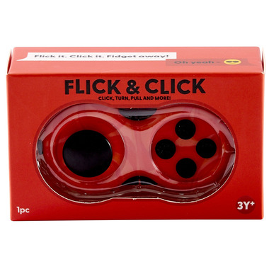 The Flick & Click is a compact, multi function fidget toy designed to keep hands actively engaged. Shaped like a mini game controller, it features clickable buttons, rotating dials, and tactile switches that offer a satisfying sensory experience for stress relief and focus.