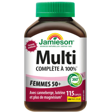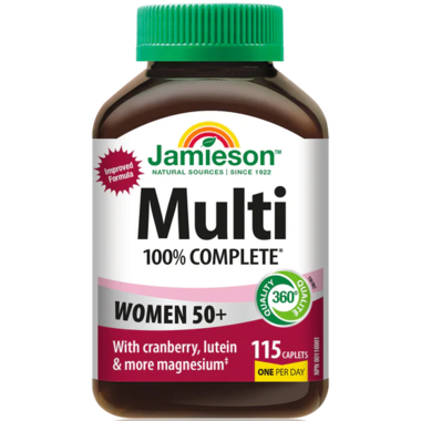 Jamieson 100% Complete Multivitamin for Women 50+ is the easy way to get 100% of your body's daily vitamin needs. It is formulated to Health Canada's recommendations so you can feel confident you are getting 100% or more of the vitamins your body needs each day!
