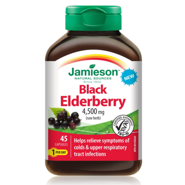 Jamieson's Black Elderberry is comprised of 100 mg of Black Elderberry extract to help relieve symptoms of colds and flus such as coughs, sore throat and mucus buildup of the upper respiratory tract. This one-a-day formula is suitable for both adolescence and adults and is TRU-ID® certified to guarantee ingredient authenticity.