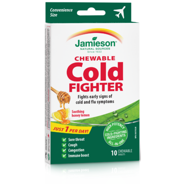 Jamieson Cold Fighter contains four high-potency, natural ingredients that provide an immune system boost to allow your body to fight off colds and flu.