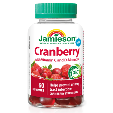 Jamieson's Cranberry with Vitamin C and D-Mannose Gummies are formulated with a high potency cranberry extract for UTI protection. The addition of Vitamin C supports your body's immune function in a dual-purpose, delicious, vegetarian friendly gummy.