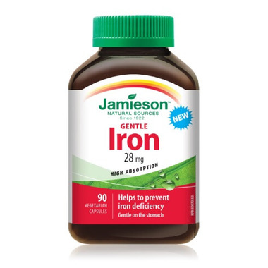 Jamieson Gentle Iron 28mg features a gentle on the stomach formula that is easy to absorb. Each vegetarian capsule contains 28mg of Iron for gentle daily iron supplementation, while the inclusion of Vitamin B2 enhances your body's ability to efficiently absorb. Great for vegetarians!