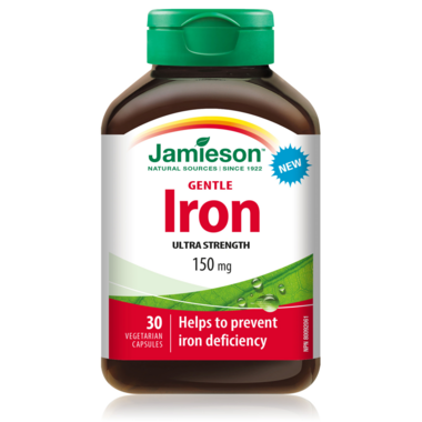 Jamieson Ultra Strength Gentle Iron is our highest potency iron product. It helps to prevent iron-deficiency related anemia and to form red blood cells while also being gentle on the stomach. This non-GMO formula contains no artificial colours, flavours, or preservatives.