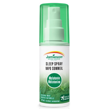 Jamieson Melatonin Sleep Spray delivers 1 mg of melatonin in just one second (1 mg per spray) to help increase sleep time and correct disturbances associated with air travel ("jet lag"). This delicious and convenient spray is the perfect option for those who have difficulty swallowing capsules or tablets and fits perfectly in your carry on.