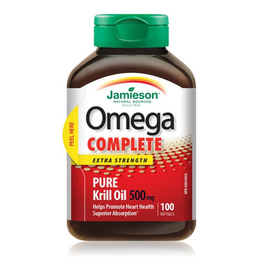 Jamieson Omega Complete Super Krill 500 mg is made from 100% Antarctic krill oil. Antarctic krill oil contains significant amounts of the omega-3 fatty acids EPA and DHA, in the form of phospholipids. This phospholipid form makes krill oil significantly more bioavailable than most other fish oils, in the triglyceride form, because it allows the EPA and DHA to be readily available for use by cells. Antarctic krill oil also contains the potent antioxidant, astaxanthin – making Jamieson Omega Complete Super Krill an antioxidant source almost fifty times more effective than other Omega-3 products.