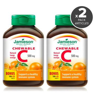 - 2x Jamieson Vitamin C Chewable Bonus Pack Tangy Orange, 120 Tablets