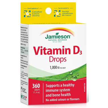 Jamieson D3 Drops is a potent format that delivers 1,000 IU of pure tasteless vitamin D3 per drop. Vitamin D3 plays a key role in the maintenance of good health. It promotes the development of bones and teeth, helping the body effectively absorb calcium and also supports your immune system.