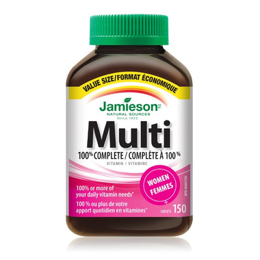 Jamieson 100% Complete Multivitamin for Women is the easy way to get 100% of your body's daily vitamin needs. Formulated to Health Canada’s recommendation, Jamieson 100% Complete Multivitamin for Women also includes cranberry for urinary tract health, so you can feel confident you are getting 100% or more of the vitamins your body needs each day.