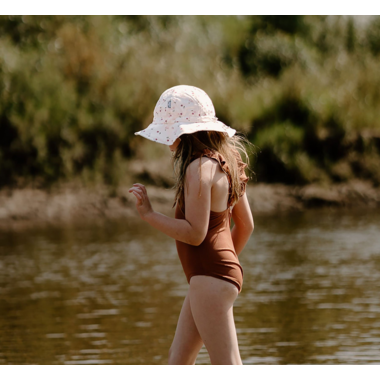 The original sun hat that started the Gro-With-Me revolution! Jan & Juls Gro-With-Me adjustable sun hats grow with your child so they can wear it for longer, thanks to a fully adjustable head drawstring and adjustable chinstrap. The wide brim of our Cotton Floppy Hats is designed to stay up in the front and ғflop to shade the neck in the back.
