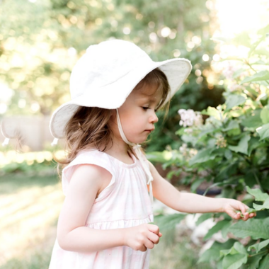 The original sun hat that started the Gro-With-Me revolution! Jan & Juls Gro-With-Me adjustable sun hats grow with your child so they can wear it for longer, thanks to a fully adjustable head drawstring and adjustable chinstrap. The wide brim of the Cotton Floppy Hats is designed to stay up in the front and flop to shade the neck in the back.