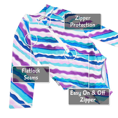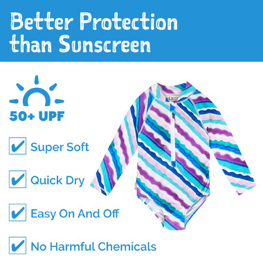 No more worrying about sunscreen washing off! Protect your little ones from the sun's harmful rays with our full coverage Girls' One Piece UV Swimsuit. Made with super soft and silky knit jersey that is gentle on sensitive baby skin. The premium fabric is quick-dry and lightweight with low water absorption. Sun protection has never been this easy just zip it up and you֒re ready for fun in the sun!