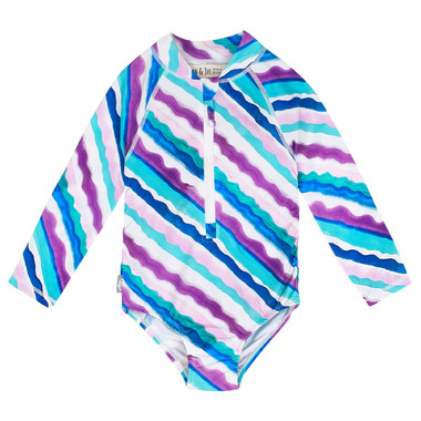 The Girls' One Piece UV Swimsuit is designed for easy on and off with a zipper, and diaper snaps on babies' sizes for easy changing. Perfect for active kids at play with a raglan cut, stretchy fabric and comfort flatlock seams. Plus, the long sleeves and high neck provide full coverage from the sun.