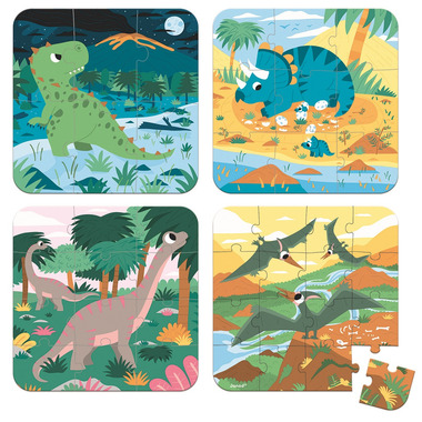 Janod 4 In 1 Progressive Puzzles Dinosaurs