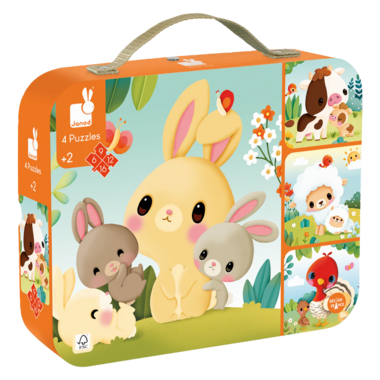 Clever: your 4 puzzles will fit in the suitcase, just like our little companions. Puzzles are ideal for instilling logic, concentration and calm to children. When combined with beautiful illustrations, the end results are an ultra-advantageous development-promoting children's first puzzle. This set of puzzles is from FSC-certified cardboard. It is decorated with vegetable-based inks.