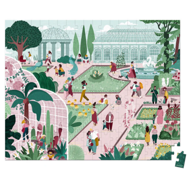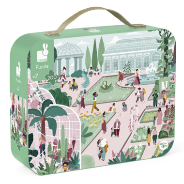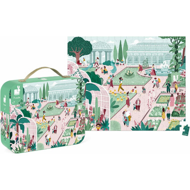 With this beautiful cardboard puzzle your child will explore a botanical garden, while developing his memory and dexterity. In its pretty suitcase, this puzzle will be easy to transport thanks to its fabric handle. A poster to be used as a template is include.