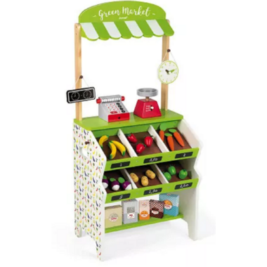 It's market day at home! Discover this cute grocery shop perfect for apprentice merchants. The Green Market wooden grocery allows children from 3 to 8 years old to imagine and create their own business.