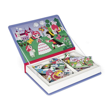 Magnetic educational game in cardboard in a princess theme. Composed of 55 magnets and 7 cards. Once the book is opened, the aim is to make on the stage the same scene as indicated on the card thanks to the magnets. This product is made of FSC-certified and other controlled material.