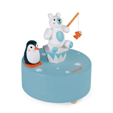 A magic wooden music box! The penguin turns cheerfully around the polar bear to the music of ‘' Petit Jeannot (Hanschen klein geht allein) ‘'. This music box will be a delight for both young and old. The winder is mechanical. This is not a toy.