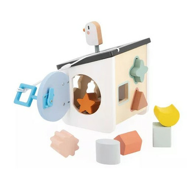 Their birdhouse-style wooden shape sorter has been designed for babies aged 18 months and up. By slotting in the different shaped, your little one will develop their dexterity, whilst learning to recognise shapes and colours. This shape-sorting house comes with 8 large wooden slot-in pieces, designed specifically to be grasped by babys little hands.