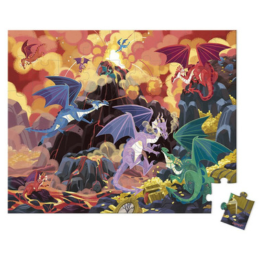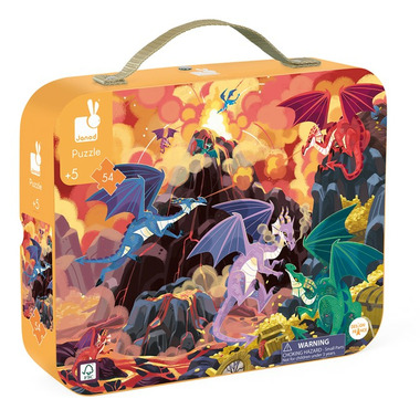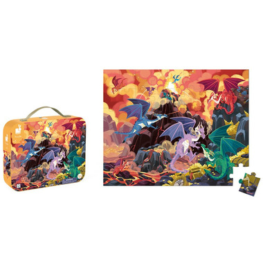 The sky has darkened, the volcano is awakening, the dragons are awakening from their slumber, their scales are shining, who will be the king? This beautifully detailed 54-piece cardboard puzzle will lead your child into a magical, imaginary world. Your child will develop memory and dexterity with this beautiful 54 piece cardboard puzzle. In its pretty case, this puzzle will be easy to transport thanks to its fabric handle. Contains a poster serving as a model for beginners, the more seasoned can then complete the puzzle independently.