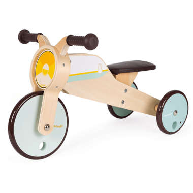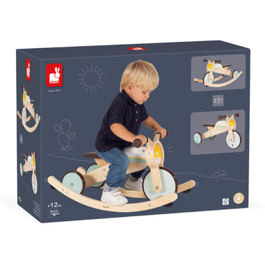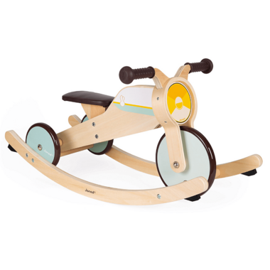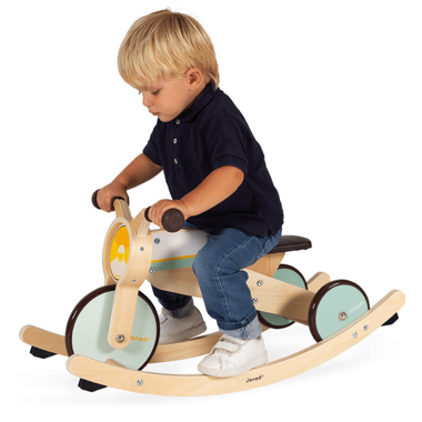 Born to be wild ! Do you have little adventurers at home, who dream of asphalt and wild plains? Here is THE ideal mount to give them a taste of freedom without having to get their license! This progressive wooden tricycle is suitable for children aged 12 months and over and can accompany them throughout their growth until they are 3 years old! How? Going from a baby rocker to a three-wheeled ride-on! This wooden toy quickly transforms thanks to its removable rocker which, once removed, gives way to a small motorcycle tricycle with a retro look! After the joys of rocking and the apprehension of balance, he will be able to flourish and gain (a little) speed when he sits behind the handlebars of his first tricycle whose front wheel is directional. This tricycle is made of FSC certified wood (wood from sustainably managed forests).