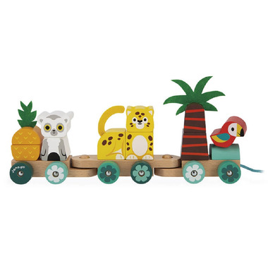 The train for the tropics is entering the station! This delightful wooden train is suitable for children from 12 months, who will enjoy taking it for a ride around the house!