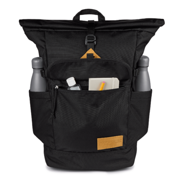 Bringing together outdoor influence with modern functionality, the Jansport Hatchet Rolltop backpack features a versatile sleeve designed to fit a 15 inch laptop, deluxe organizer panel, tablet pocket and water bottle pockets, with one large main compartment and a front zippered accessory pocket.