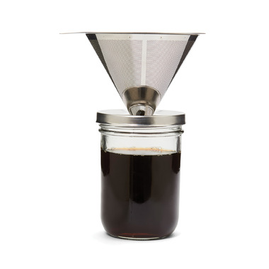 The metal lid snaps on to both sizes of jar, providing you with a leak-free seal when properly secured. Easily add coffee grinds to the funnel and pour in boiling water! Great for on-the-go coffee aficionados.