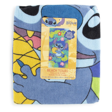 Dry off in Disney style with the Jay Franco Stitch Beach Towel-soft, absorbent, and full of fun, it's perfect for pool days, beach outings, or sunny adventures with your favorite blue alien.