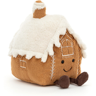 Chunky, cheery and full of chuckles, Amuseable Gingerbread House brings the party! This kooky cottage has embroidered icing and a snowy roof of buttercream fur. Kicking up those chocolate cord boots, our happy house is full of holiday hugs. Anyone for cookies?