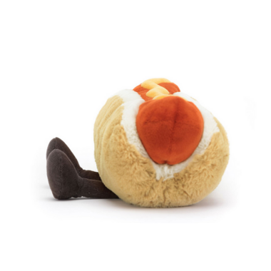For summer fun, meet this silly sausage! Amuseable Hot Dog loves a trip to the fairground, trotting along on cordy feet. With a fluffy bread bun in beige and white fur and a gingery frankfurter covered in mustard, our smiley snack can't wait to try all the rides!